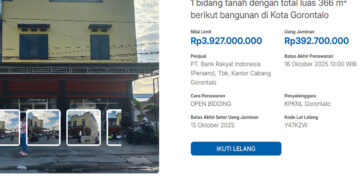 Gorontalo, mimoza.tv – Sebuah bangunan ruko dua lantai dengan luas tanah 366 meter persegi di Kota Gorontalo resmi masuk daftar lelang terbuka (open bidding) oleh Kantor Pelayanan Kekayaan Negara dan...