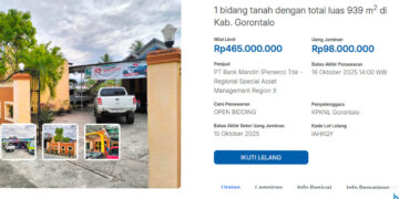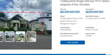 Gorontalo, mimoza.tv – Sebuah bangunan ruko dua lantai dengan luas tanah 366 meter persegi di Kota Gorontalo resmi masuk daftar lelang terbuka (open bidding) oleh Kantor Pelayanan Kekayaan Negara dan...