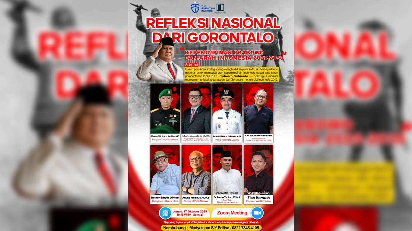 Forum Refleksi Nasional dari Gorontalo terbuka untuk umum dan dapat diikuti secara daring. Informasi pendaftaran serta tautan Zoom disediakan melalui kanal resmi The Gorontalo Institute. (rls/luk)