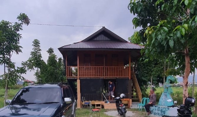 Bangunan sekretariat itu sendiri bukan sekadar tempat berkegiatan organisasi. Ia berdiri dalam bentuk rumah panggung kayu, merepresentasikan arsitektur lokal Gorontalo yang sarat makna: keterhubungan dengan alam, kearifan ekologis, dan filosofi hidup yang sederhana namun kokoh. Di halaman, tumbuh pepohonan khas Sulawesi, yang dalam tradisi lokal tidak hanya menjadi elemen lanskap, tetapi juga simbol ketahanan, keberlanjutan, dan kehidupan.