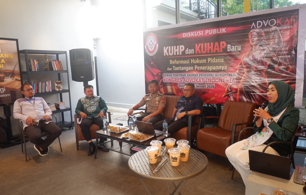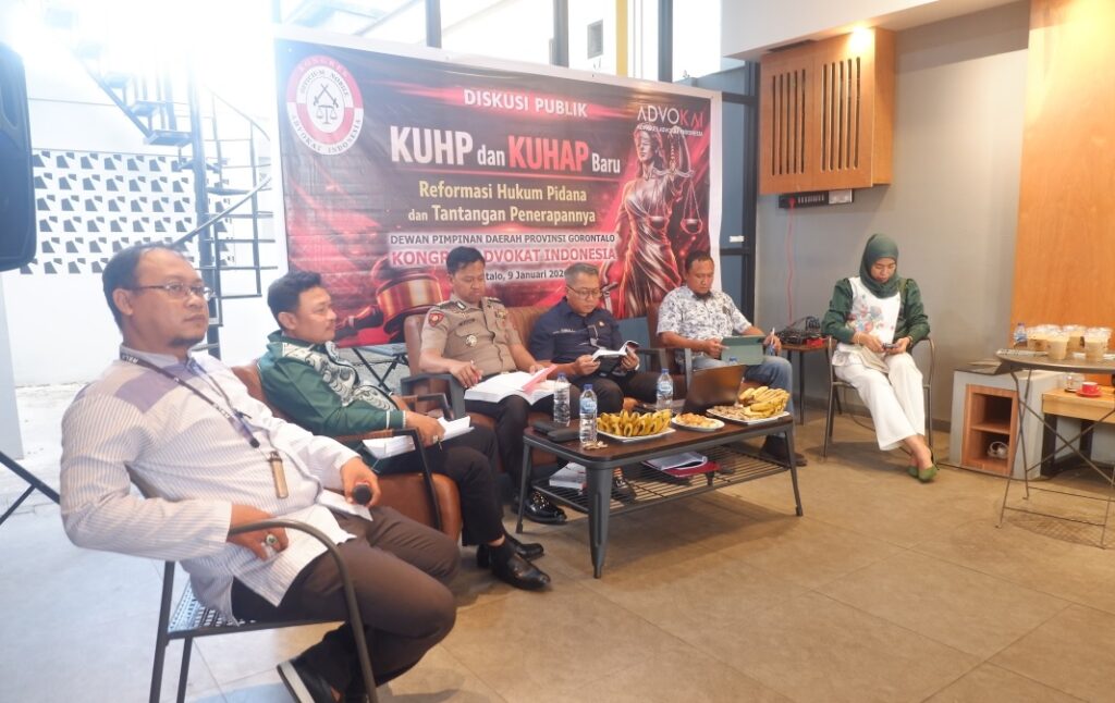 Gorontalo, mimoza.tv – Reformasi hukum pidana nasional memasuki babak baru pasca disahkannya Kitab Undang-Undang Hukum Pidana (KUHP) Nasional dan rencana pembaruan Kitab Undang-Undang Hukum Acara Pidana (KUHAP). Isu strategis ini menjadi topik utama dalam diskusi publik yang digelar Kongres Advokat Indonesia (KAI) Provinsi Gorontalo, Jumat (9/1/2026), di salah satu restoran di Kota Gorontalo.