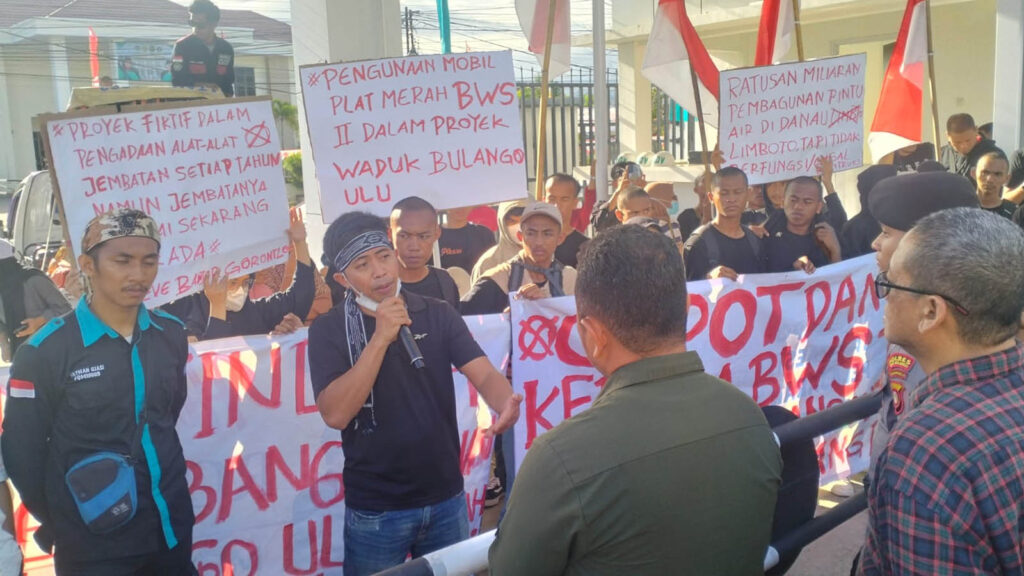 “Ada keterlambatan pembangunan bendungan Bulango Ulu, dari yang rencana tiga tahun tapi sampai sekarang tidak selesai. Ada apa ini? Jangan sampai ini dimanfaatkan oleh oknum pejabat untuk meraup keuntungan pribadi,” ucap Muhammad Lutfi, selaku koordinator aksi.