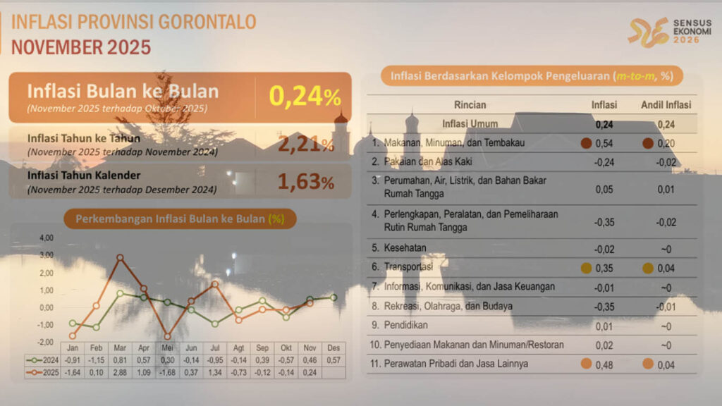 Dengan tekanan ekonomi yang belum sepenuhnya mereda, November 2025 menjadi potret bahwa pertumbuhan ekonomi Gorontalo masih bergerak, namun memerlukan pengawalan ketat—khususnya agar kesejahteraan petani tidak tertinggal dalam dinamika harga dan konsumsi masyarakat.