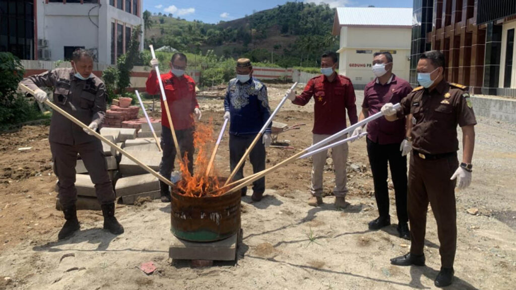 “Pemusnahan ini adalah bentuk kepastian hukum dan untuk menghindari penumpukan barang bukti di gudang Kejari Gorontalo Utara,” jelasnya.