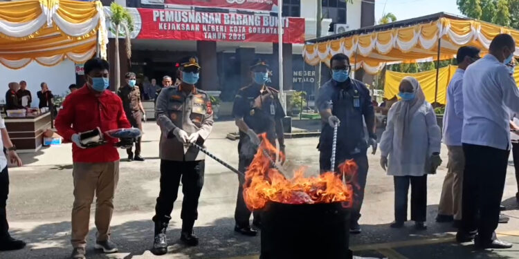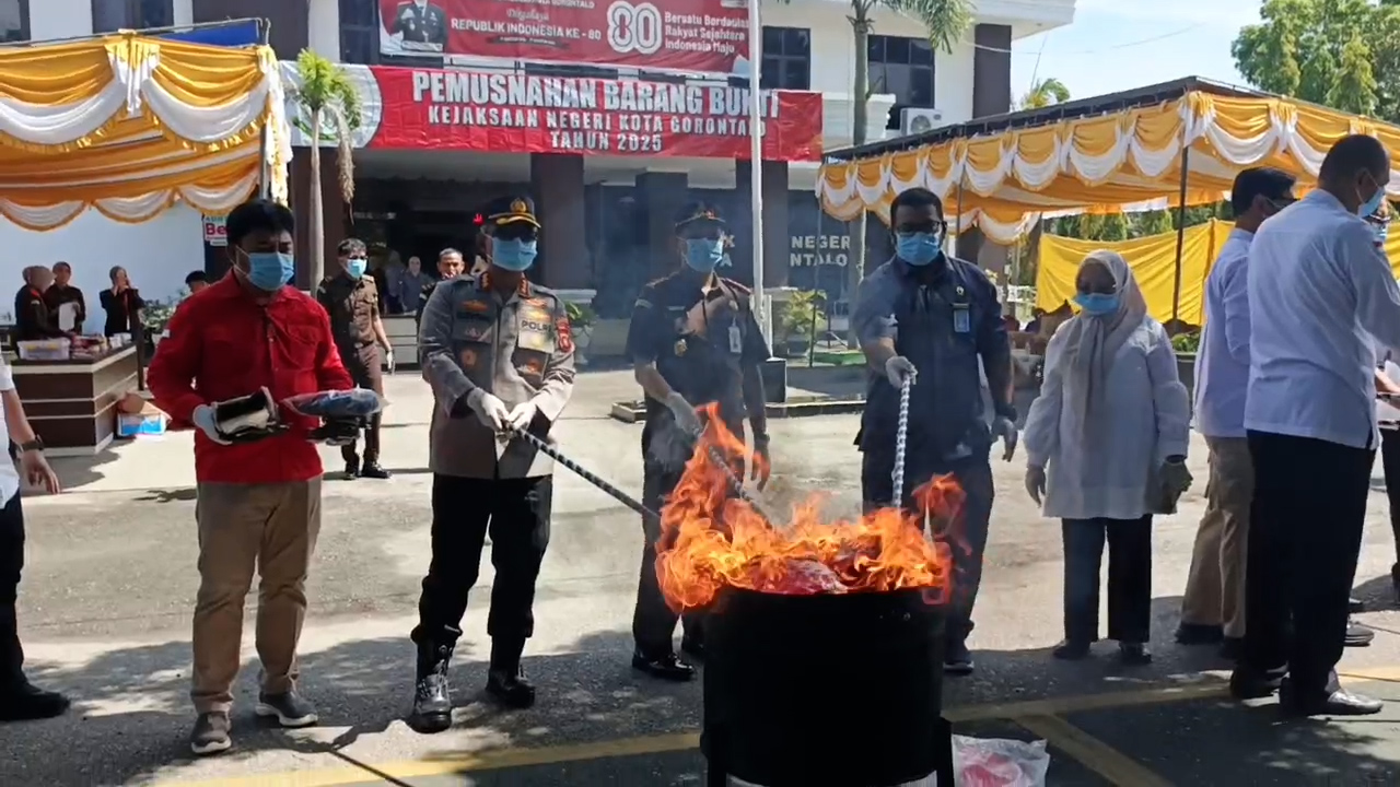 “Pemusnahan ini merupakan tindak lanjut dari perkara yang sudah berkekuatan hukum tetap, sekaligus upaya memastikan agar barang bukti tersebut tidak disalahgunakan lagi,” ujar Kajari Kota Gorontalo, Edy Hartoyo.
