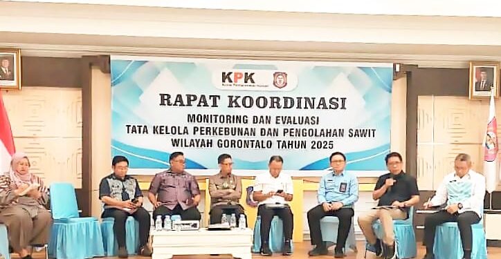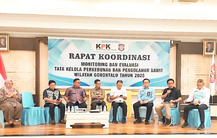 GORONTALO, mimoza.tv – Setelah sebelumnya melakukan konsolidasi terbatas, peninjauan lapangan, dan berdialog langsung dengan petani sawit di Desa Toyidito, Kabupaten Gorontalo, Komisi Pemberantasan Korupsi (KPK) kembali melanjutkan agenda penanganan tata kelola sawit di Provinsi Gorontalo dengan menggelar Rapat Koordinasi (Rakor) Monitoring dan Evaluasi, Rabu (13/11/2025).