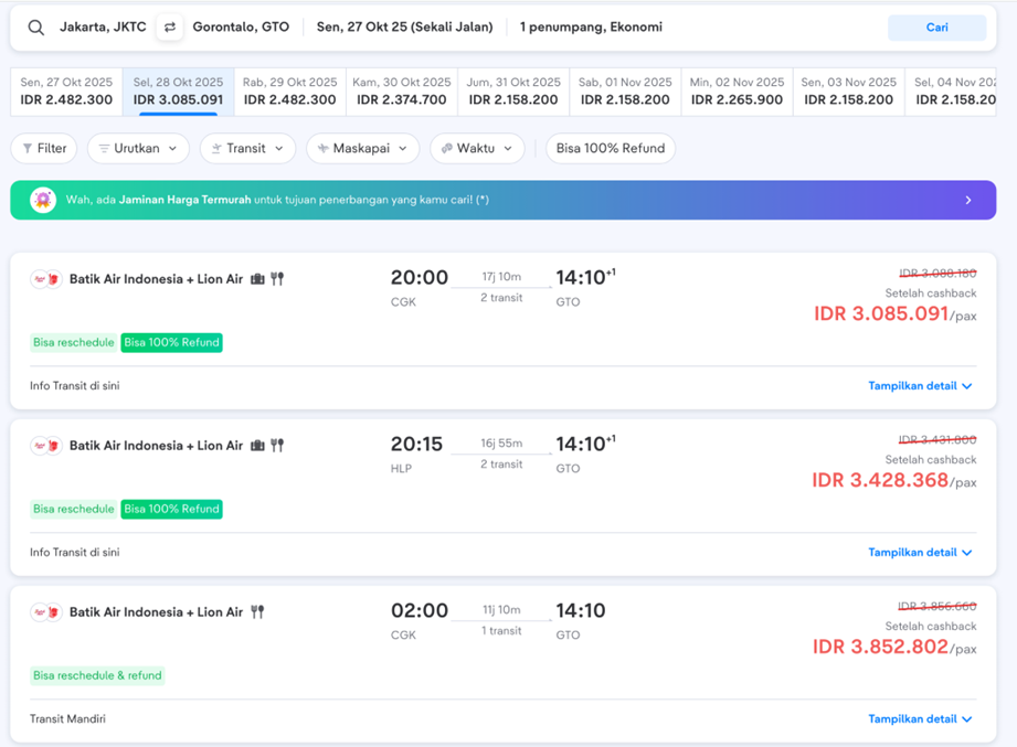 Kejanggalan diperparah oleh fakta bahwa semua penerbangan ke Gorontalo yang ditampilkan adalah penerbangan transit. Ini membuka sebuah pertanyaan hukum yang krusial: bagaimana TBA dihitung untuk perjalanan multi-segmen? Apakah TBA dihitung berdasarkan jarak lurus dari titik asal ke tujuan akhir (misalnya, Jakarta ke Gorontalo), atau merupakan penjumlahan dari TBA untuk setiap segmen penerbangan (misalnya, TBA Jakarta-Makassar ditambah TBA Makassar-Gorontalo)?