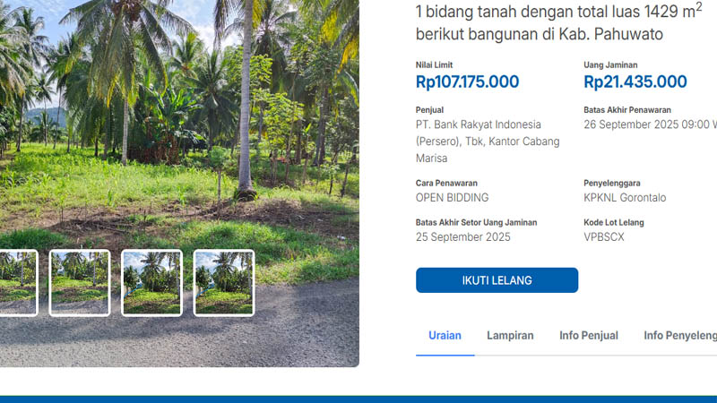 Lelang seperti ini semakin diminati warga Gorontalo yang ingin memiliki tanah atau rumah dengan harga lebih kompetitif. Namun, calon peserta diingatkan untuk memperhatikan syarat dan ketentuan, termasuk memastikan legalitas objek lelang serta menyetor uang jaminan tepat waktu.