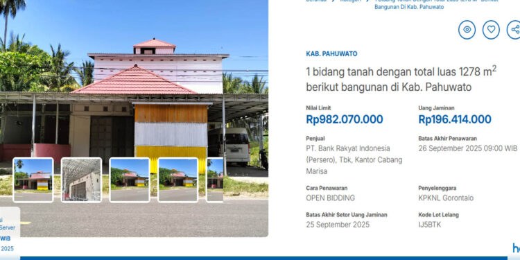 Pahuwato, mimoza.tv – Kesempatan menarik hadir bagi warga yang tengah mencari properti strategis di wilayah barat Gorontalo. Sebidang tanah dengan luas 1.278 meter persegi, berikut bangunan yang berdiri di atasnya, resmi dilelang melalui Kantor Pelayanan Kekayaan Negara dan Lelang (KPKNL) Gorontalo.