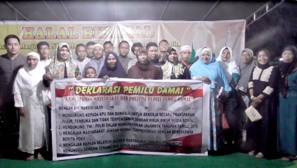 Gorontalo, mimoza.tv – Memanfaatkan momentum Halal bi halal, ratusan warga di Kecamatan Telaga Jaya menyerukan hidup bertoleransi, pasca Pemilu 2019. Ratusan warga ini pun menolak segala bentuk hoax yang saat ini tengah terjadi, juga tentang saling mengklaim sebagai pemenang Pemilu 2019.