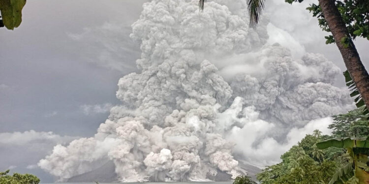 Gorontalo, mimoza.tv – Pusat Vulkanologi dan Mitigasi Bencana Geologi (PVMBG) Kementerian ESDM kembali menaikkan status Gunungapi Ruang menjadi level IV atau ‘Awas’ per hari ini, Selasa (30/4) pukul 01.30 WITA. Peningkatan status tersebut dilakukan setelah gunungapi berjenis stratovolcano itu kembali meletus dan mengeluarkan kolom erupsi mencapai 2.000 meter dari atas puncak yang disertai suara gemuruh dan gempa yang dirasakan secara terus menerus.