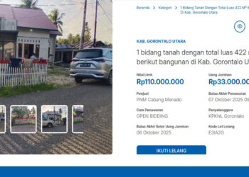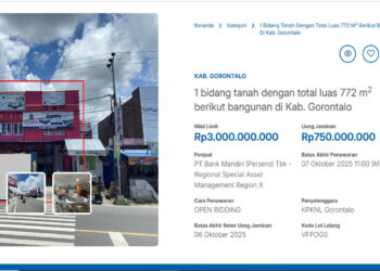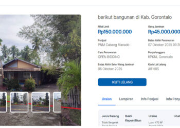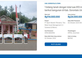 Gorontalo, mimoza.tv – Satu bidang tanah dengan luas 470 meter persegi berikut bangunan rumah di atasnya, akan dilelang melalui Kantor ...