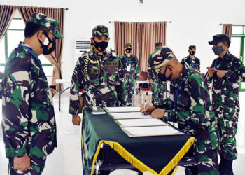 Gorontalo, mimoza.tv - Komandan Korem 133/Nani Wartabone, Brigjen TNI Bagus Antonov Hardito, memimpin acara penandatangan pakta integritas sebagai awal penyelenggaraan ...