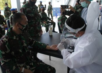 Manado, mimoza.tv - Keluarga Besar TNI AU (KBAU) Lanud Sam Ratulangi Manado mengikuti pengecekan kesehatan atau rapid test di Mako ...