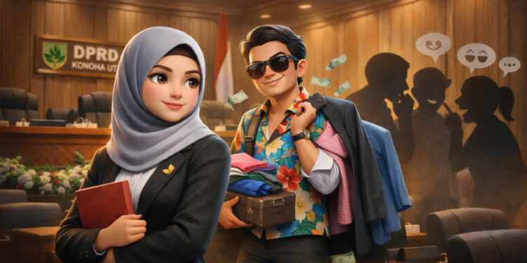 Satire kadang diperlukan untuk membaca realitas. Di Konoha Utara, para penjaga marwah lembaga kerap lebih sibuk menjaga citra ketimbang menjaga anggaran. Mereka fasih bicara prosedur, namun pelan ketika diminta bicara substansi. Sementara di luar sana, rakyat lebih peduli pada soal harga kebutuhan pokok, peluang kerja, hingga isu calo dalam rekrutmen aparatur yang tak kunjung benar-benar dibereskan.